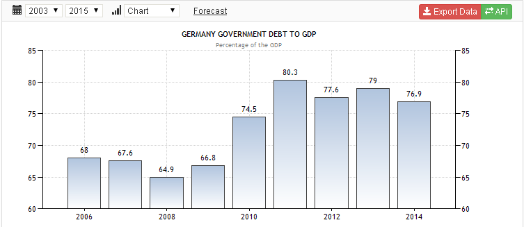 Hai să luăm un exemplu faimos. La ora actuală US are un PIB de 16.77 trilioane $. Datoria US însă este de 101.53% din PIB, deci un calculat 17.026 trilioane. În această lume a dezmățului și lipsei de moderație, cu grecii având o datorei de 175% din PIB și Japonia peste 200% din PIB, am putea spune că n-o duc prea rău. Dacă ne raportăm la PIB, gîndul ne duce la faptul că are datorii numai cât produce într-un an. Numai că SUA poate plăti aceste datorii sau măcar dobânzile aferente doar cu încasările la buget. Acestea erau estimate la 26.9% din PIB, deci 4.5 trilioane $. Cu alte cuvinte, guvernului USA i-ar lui 3 ani și 9 luni ca să plătească această datorie – presupunând c-ar putea funcționa cu “aer”. Nu e deloc rău pentru că, acum 4 ani, acest raport era mult mai rău – peste 7 ani de buget pentru a putea acoperi datoria- dar totuși nu foarte bun în viața reală. Însă, dacă US ar ridica nivelul de taxare la cel al Franței – care este 44.6% din PIB – s-ar însănătoși foarte repede.
