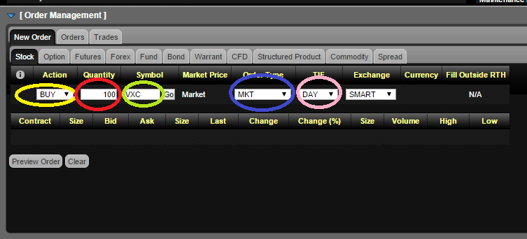 • TIF – Nu știu de la ce vine – e timpul cât acest ordin rămâne activ. Pentru acest ordin simplu este “Day” – până ce se închide bursa. Dacă, să spunem (prin absurd), nimeni nu vinde VXC – ordinul nu poate fi îndeplinit și rămâne valid până la capătul zilei, când este anulat.