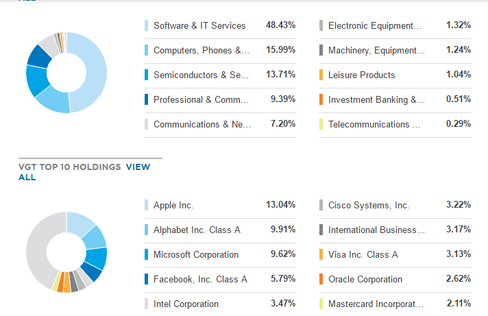 Evaluați singuri riscurile. Nu este nevoie de mare știință ca să ajungeți la răspunsul corect. Iată componența unui asemenea ETF – focalizat pe companii de tehnologie. Am ales intenționat acest ETF pentru că este unul “riscant” – nu distribuie riscurile pe mai multe sectoare de activitate. Chiar și așa, e compus din Apple, Google (Alphabet), Facebook, Intel, Cisco, Visa, Oracle, Mastercard. Vă puteți imagina toate aceste companii dând faliment? Cel mai mare – Apple are o pondere de 13%. Să presupunem că, prin absurd, Apple ar da faliment, peste noapte – astfel încât directorii acestui ETF să nu aibă timp să ia nici o măsură. Asta ar însemna o pierdere maximă de 13% – bazată pe un scenariu absurd (probabil recuperată de celelalte firme din compoziția ETF-ului.