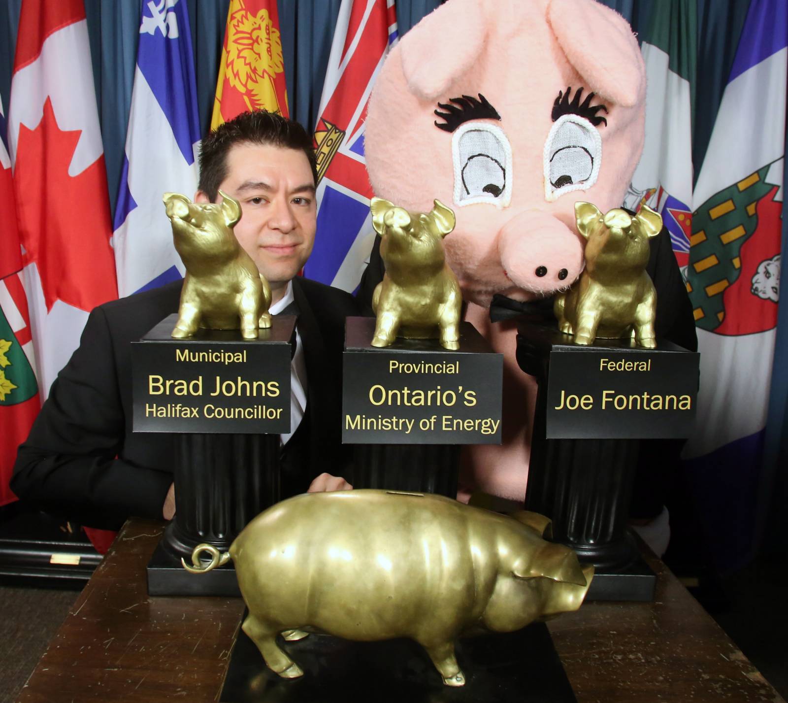 - Municipal – Municipalitatea Saskatoon (care are doar 222,000 de locuitori) a primit 2 nominalizări: pentru un sistem de parcare municipal care a costat 5.3 mil $ și care nu funcționează bine la frig (și au frig din belșug) și, a doua nominalizare, pentru 462,000$ cheltuiți pentru un sistem de iluminat decorativ pentru un pod care a fost, ulterior, demolat.
